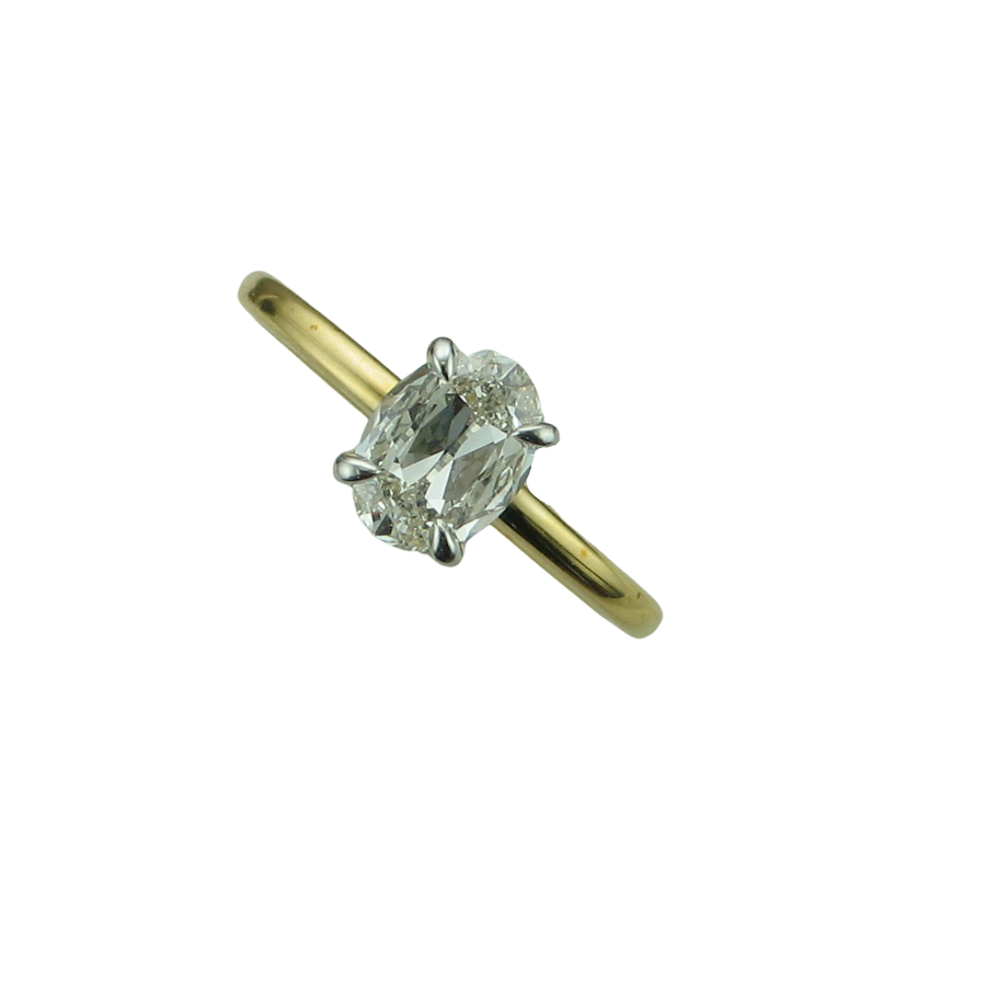 1.00CT VS2 K Oval Diamond set in a Soliatire Ring in 18K White and Yellow Gold. The center diamond has a GIA Certificate #6441093842