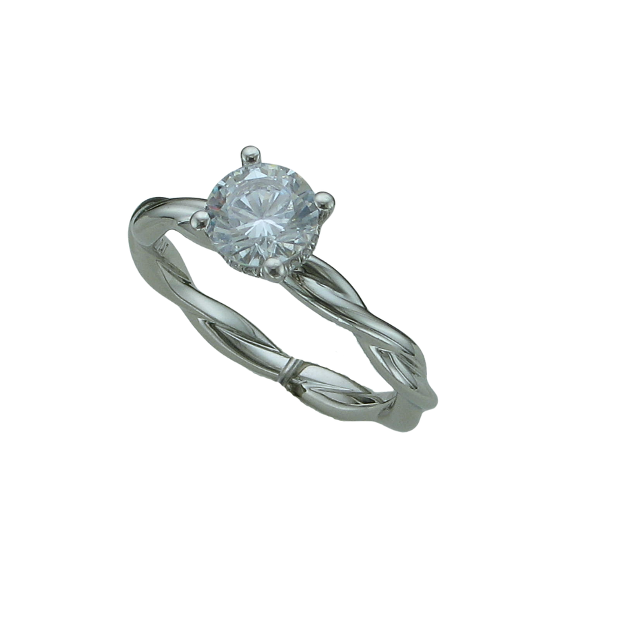LADIES 1CT C/Z ROUND CENTER STONE WITH 12=.03TW IN AN HIDDEN HALO SETTING. THE TWIST BAND IS SET IN PLATINUM WITH A FINGER SIZE 6.5