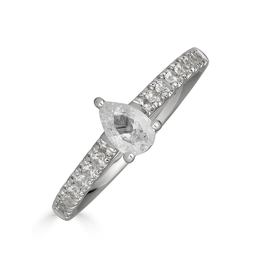 .50CT Center Pear Shape Center Diamond and AND 16=.30TW I1 G-H Round Diamonds Pave set in a 14KW Ring with a Finger Size 6.75