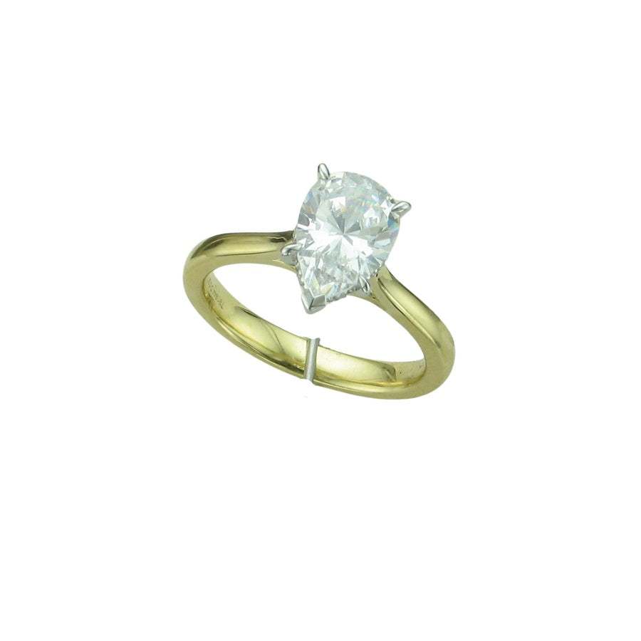 2.00CT (7MM) Princess Cut Cubic Zirconia set in 18K gold two tone ring. This wonderful ring features a diamond hidden halo set with 14=.06CTW VS2 G brilliant diamonds designed to illuminate your center stone. Finger size 6.5