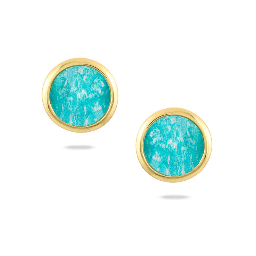 18KT yellow gold 2=2.56ctw clear quartz over amazonite bezel set earrrings.