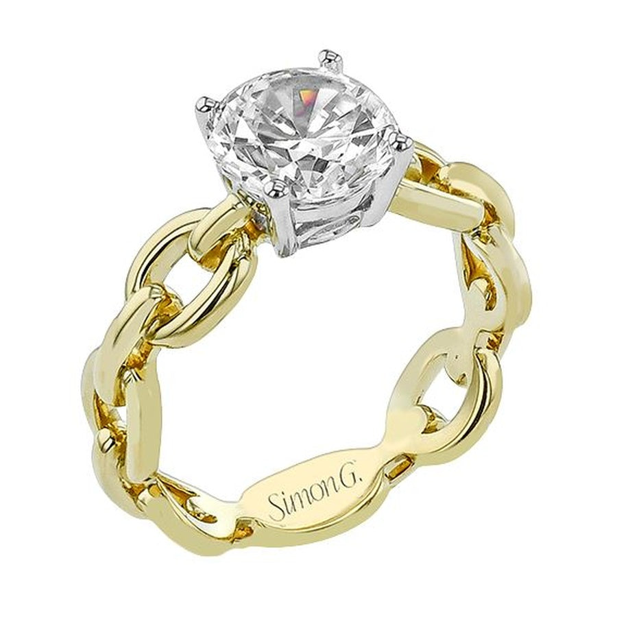 2.00ct (8.00mm) Round C/Z Center Stone 18K Gold Two-Tone Solitaire E/R. This modern engagement ring in 18k yellow foundation - white head is crafted in chain link collection. Finger size 6.5