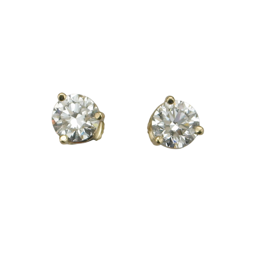 Ladies 14kt Yellow Gold Diamond Stud earrings containing 2=2.01tw Round Brilliant diamonds of SI23 clarity and I color, GIA certified. They are set into 3 prong Cocktail style earring setting secured with threaded posts and backs.