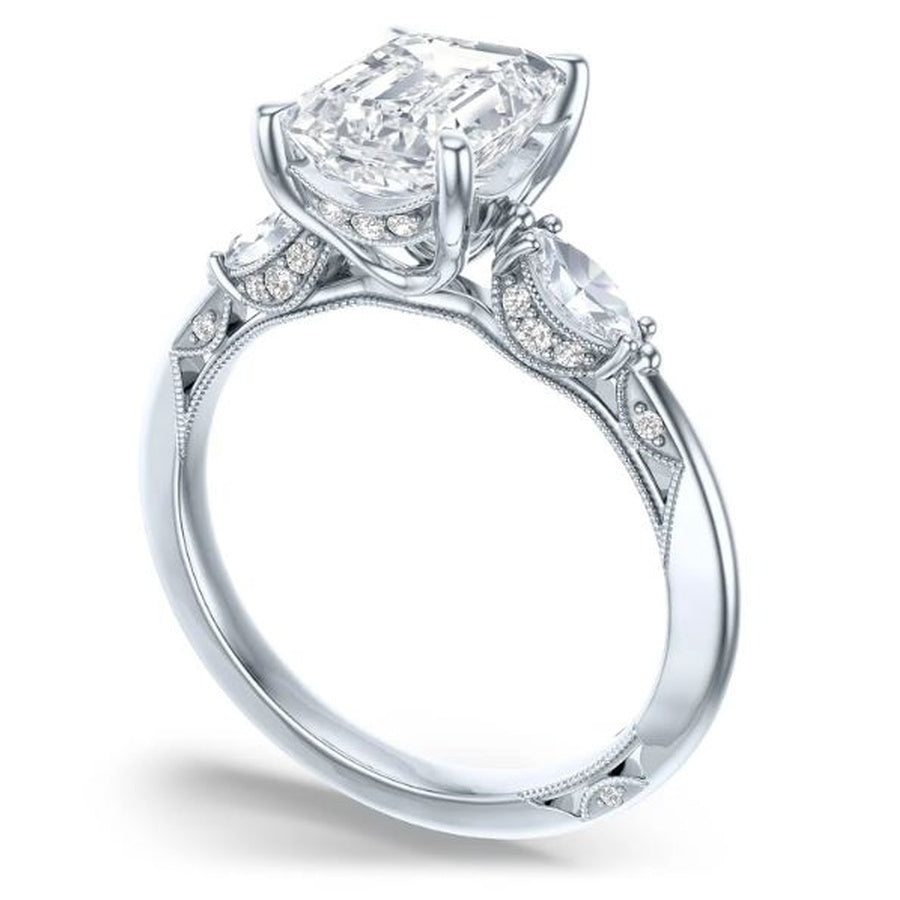 2.00CT(8X6MM) Emerald C/Z Center Stone flanked by 2 Marquise Diamonds and small Pave Set Diamonds totalling 26=.41CTW VS G set in Platinum with a finger size of 6.5 Fom the Simply Tacori Collection