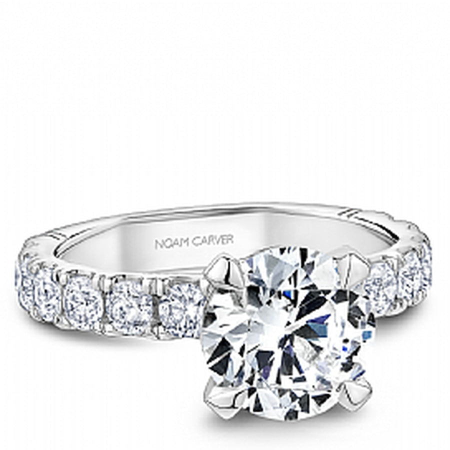 2.50CT C/Z Round Center Stone with 32=1.06CTW Diamond gallery and featuring an 18K White Gold Euro Shank Foundation finger size 6.5 from the Atelier Collection