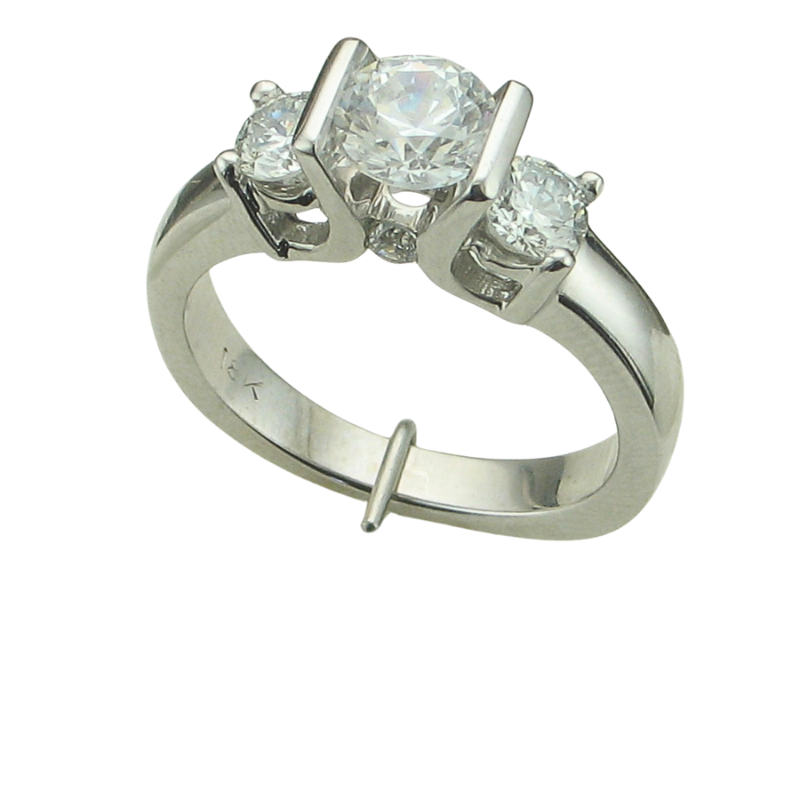 .75CT(5.88MM) Round C/Z Center Stone flanked by 2=0.50TW VVS-VS G-H Diamonds in a 18K White Gold High Polish Band featuring 2=0.08TW VVS-VS G-H peekaboo diamonds below the center diamond. Finger Size 6.0