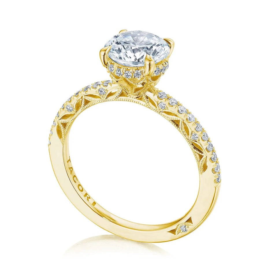 2.25CT(8.5MM) Round C/Z Center Stone set with 46=.27TW VS G Diamonds in 18K Yellow Gold. Finger size 6.5 From the Dantela Collection