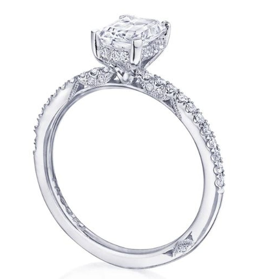 2.00CT(8X6MM ) Emerald C/Z Center Stone set with 50=.29TW VS G in a Platinum Solitaire Finger Size 6.5 From the Simply Tacori Collection