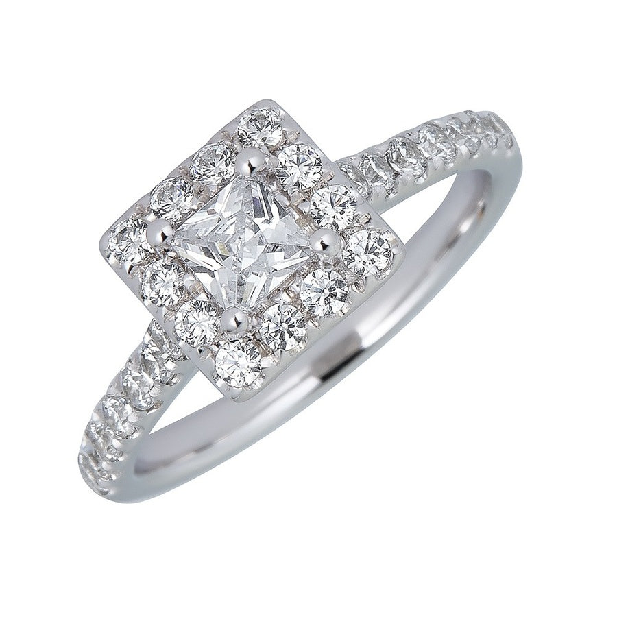 .50CT Princess Cut Diamond set with 26=.50CTW I1 GH Diamonds in 14K White Gold Finger Size 6.5