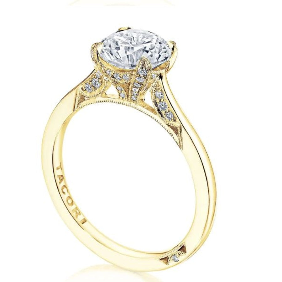 1.50CT(7.5MM) Round C/Z Center Stone set with 52=.18TW VS G Diamonds in 18K Yellolw Gold. Finger Size 6.5 from the Simply Tacori Collection