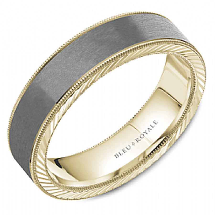 6MM WIDE BAND WITH 14K YELLOW GOLD HIGH POLISH ROPE EDGES AND TANTALUM SANDPAPER FINISH INLAY FINGER SIZE 10