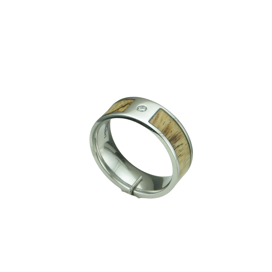 MENS COBALT CHROME BAND WITH A TAMARIND WOOD INLAY SET WITH A .05PT DIAMOND. 6MM IN WIDTH WITH A FNGER SIZE OF 11