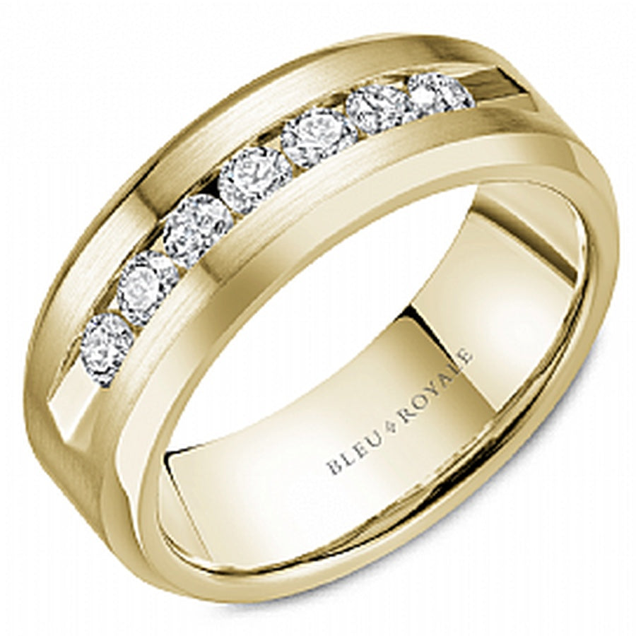 8MM 14K YELLOW GOLD BAND CHANNEL SET WITH 7=.68TW SI G-H DIAMONDS. SANDPAPER TOP & HIGH POLISH EDGES FINGER SIZE 10