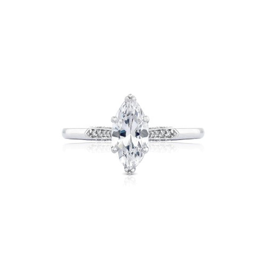 .76CT VS2 D Marquise Cut Diamond set with 24=.11TW VS G Pave Set Side Diamonds in 18K White Gold with a Finger size 6.5 From the Simply Tacori Collection: