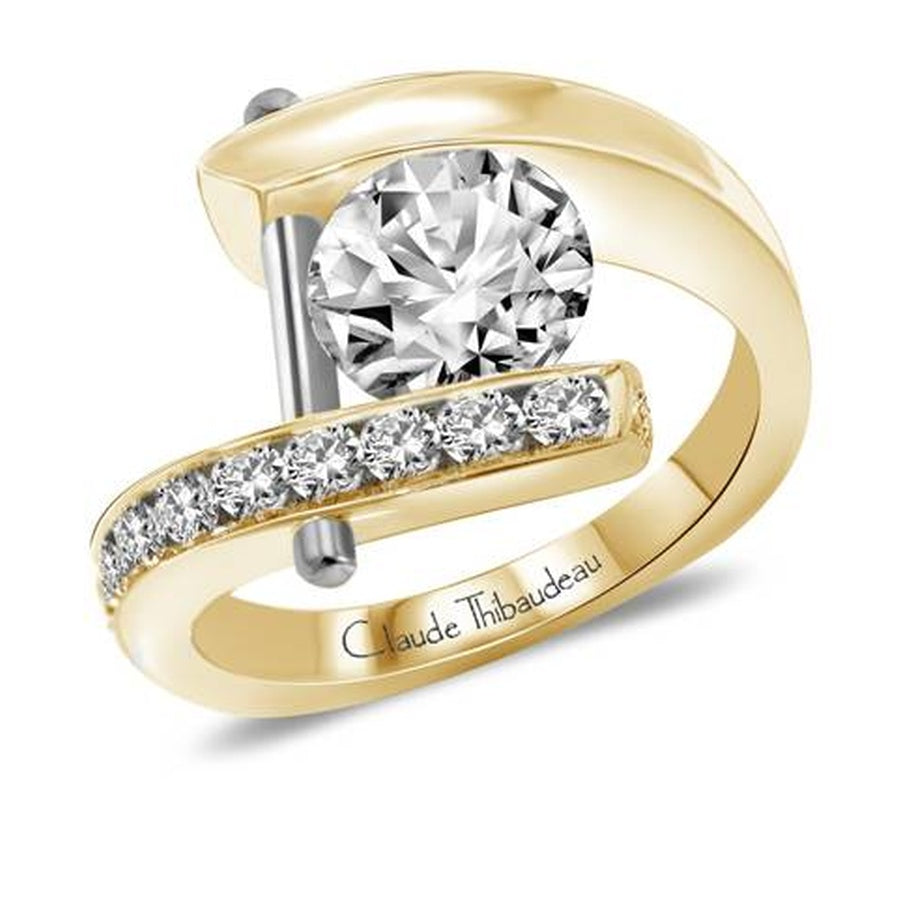 1.50CT (7.5MM) C/Z Center Stone and 8=.40CTW VS G diamond set down one side of this low set ring