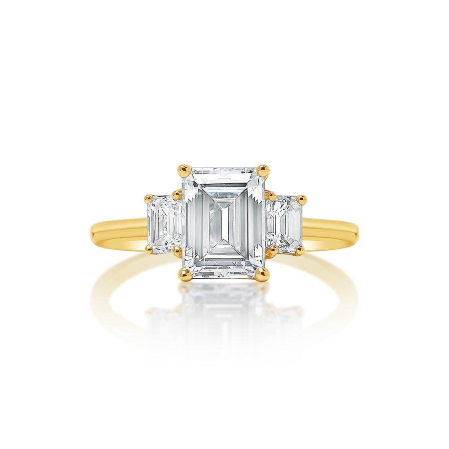 Classique Creations Emerald Diamond Three Stone Cathedral Set Engagement Ring Z2790E