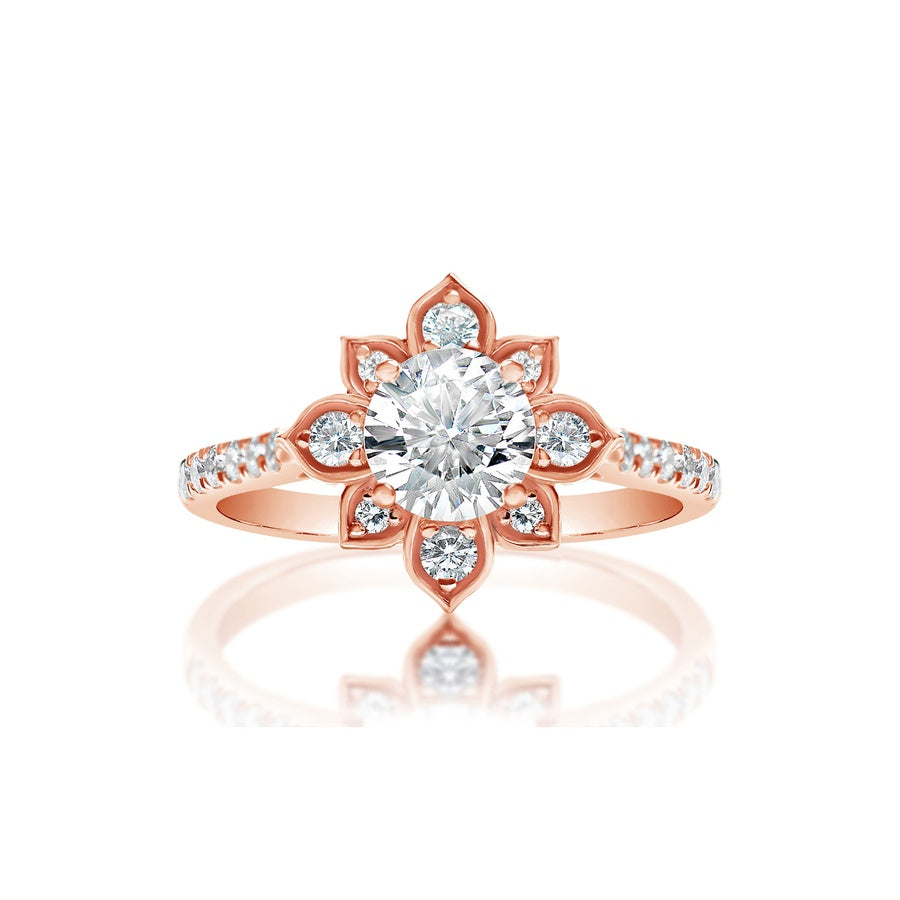 Classique Creations Round Diamond Flower Petal Halo Engagement Ring RB551GR