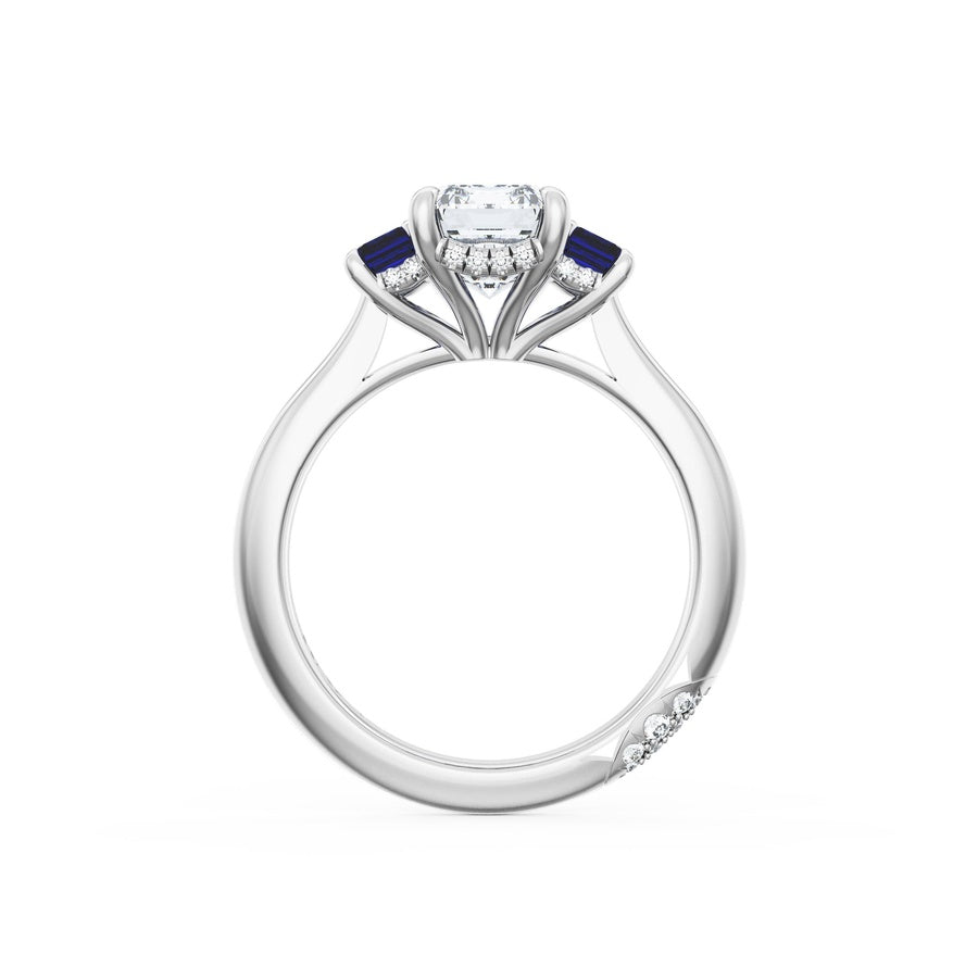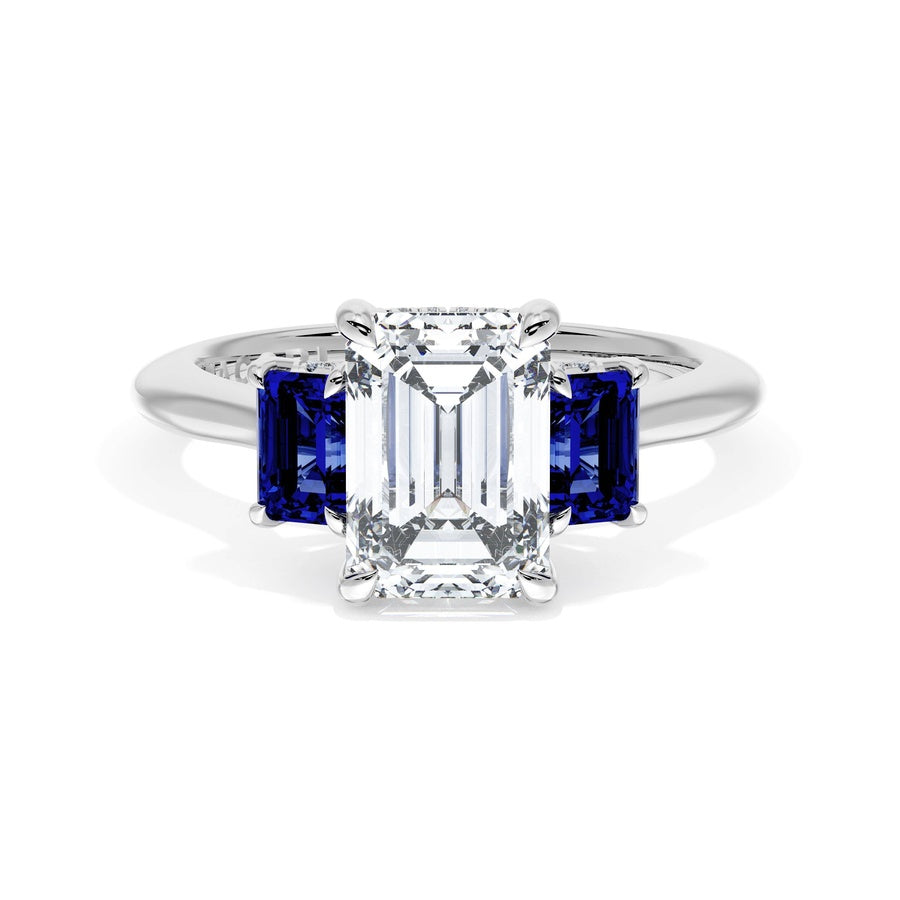 Emerald 3-Stone Engagement Ring in Blue Sapphire