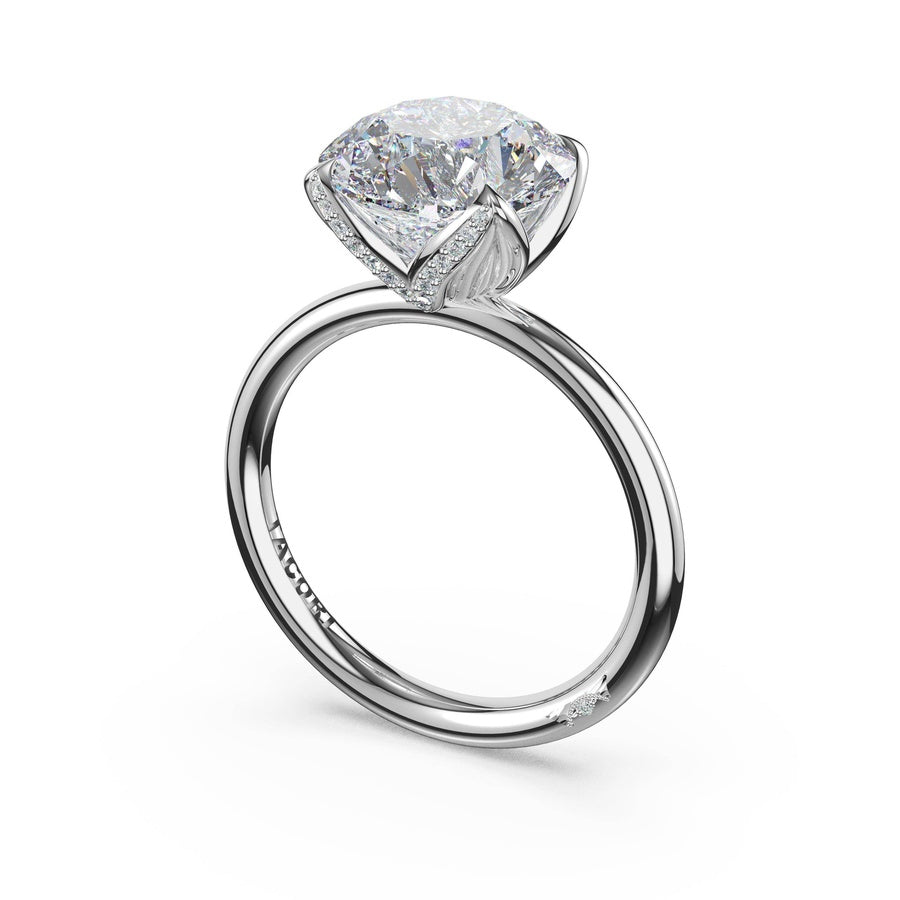 Round Sculpted Petal-Pavé-Prong Solitaire in 18kt White Gold